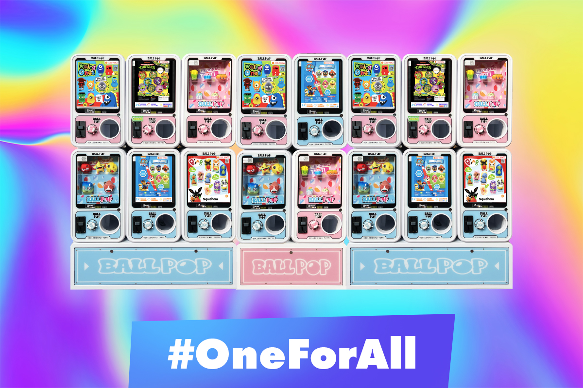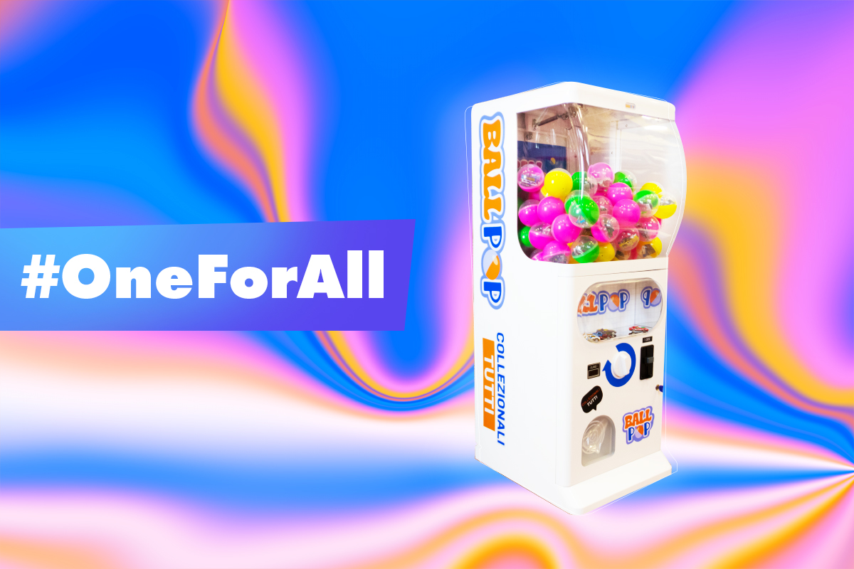 Classico distributore di palline ma in una versione assolutamente moderna, colorata, luminosa, invitante. Un vero must per la fascia d’età scolare e prescolare.